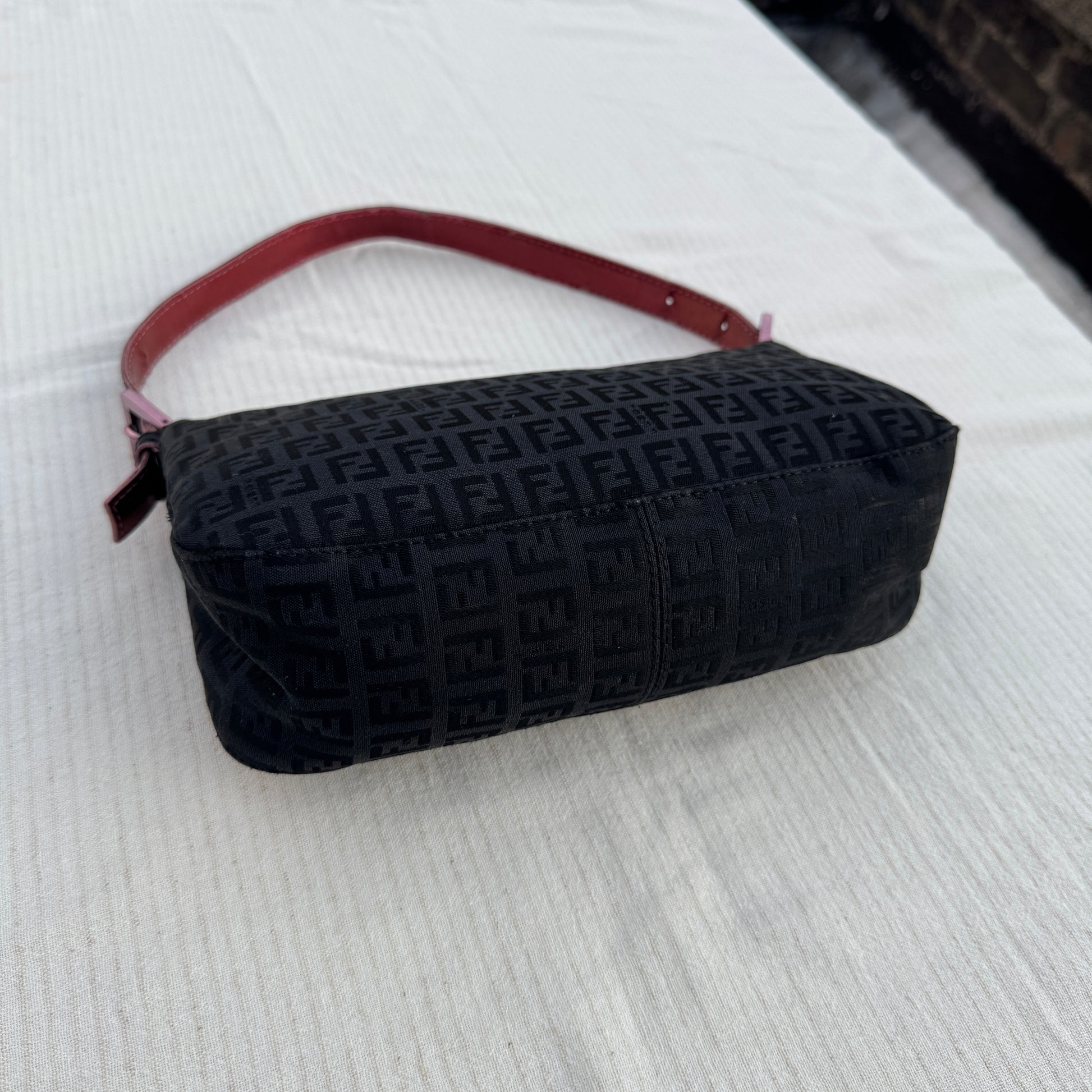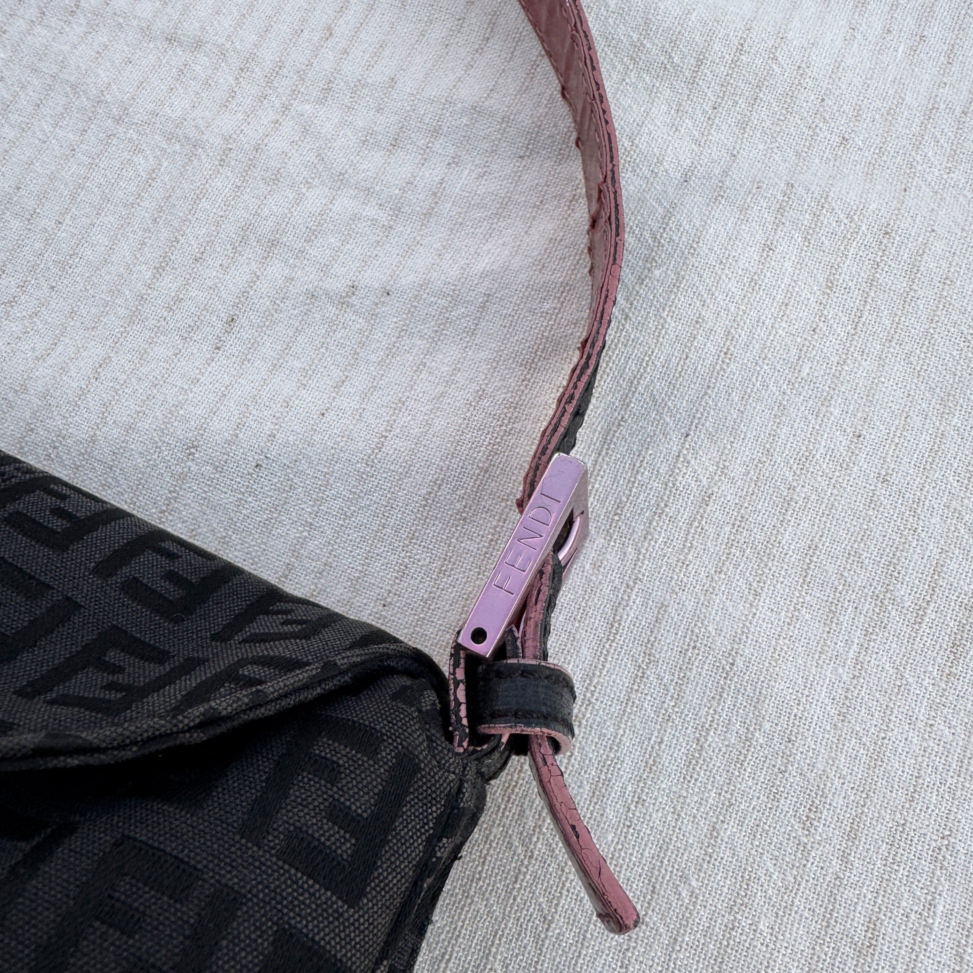Metallic pink accents with red strap. Unique metallic Fendi hardware.
